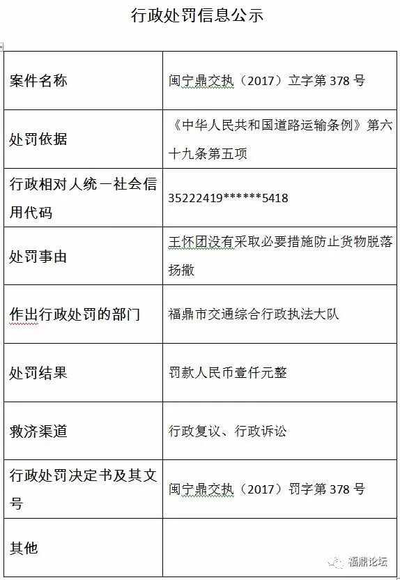 公示闽宁鼎交执(2017)罚字第378号 行政 / 处罚 / 信息